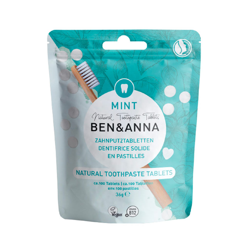 Dentifricio in pastiglie senza fluoro. Puoi contare su una gamma di ingredienti naturali di altissimo livello, dal bicarbonato di sodio, al lievito, agli estratti di acacia e menta. Inoltre è presente anche la vitamina B12 per prevenire i disturbi legati alla carenza. La confezione è costituita completamente ed unicamente da carta, mentre l’involucro interno è rivestito di un sottile film di acido polilattico (PLA). Noto anche come “bio plastica”, il PLA è un materiale completamente naturale, in quanto derivato dalla trasformazione degli zuccheri presenti in mais, barbabietola, canna da zucchero e altri materiali naturali e rinnovabili (e non derivati dal petrolio, a differenza della plastica tradizionale).