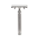 Il peso (70 g) è uniformemente distribuito per una rasatura più equilibrata. Finitura in nickel lucido.