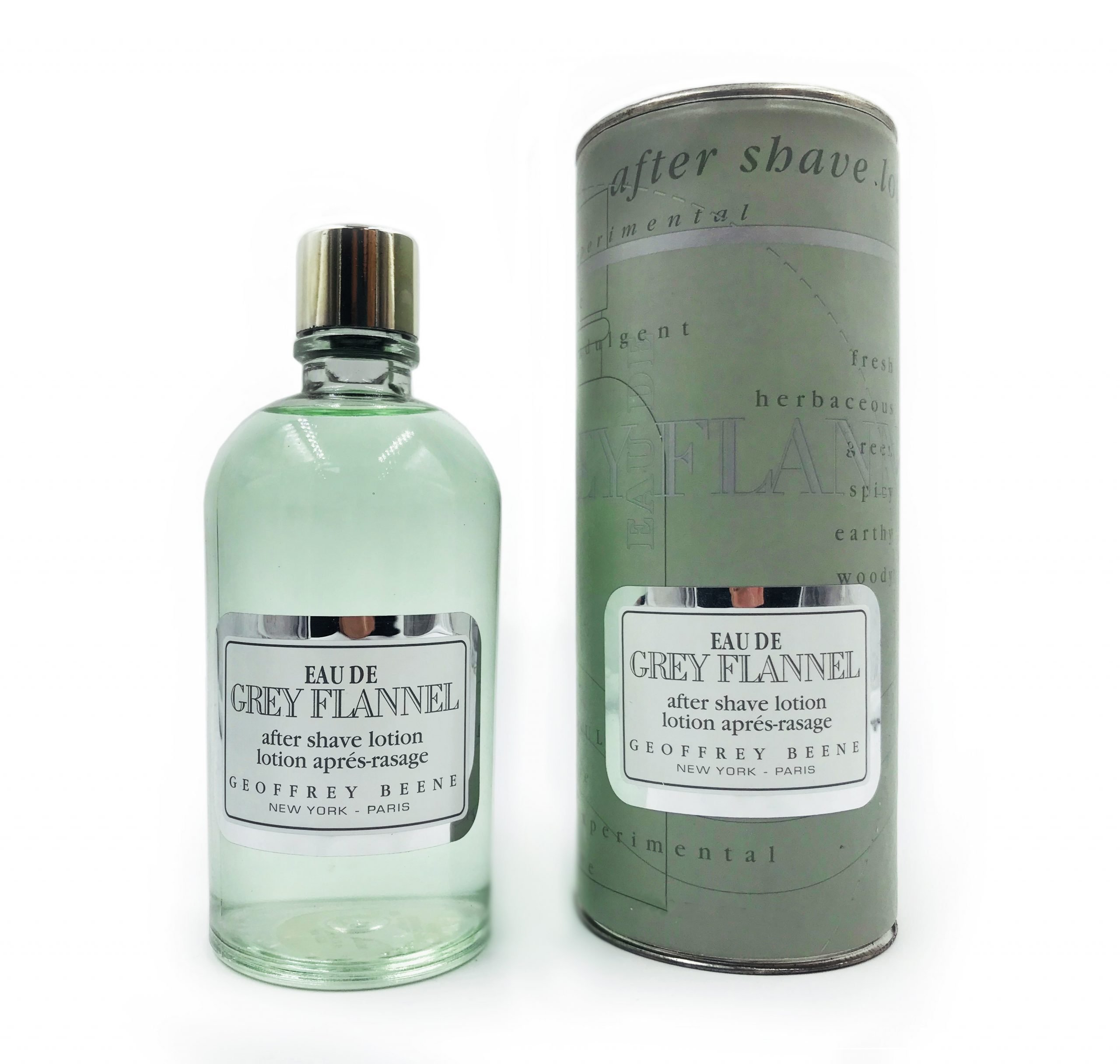 Eau de Grey Flannel di Geoffrey Beene, lanciato nel 1975, è un after shave dalla fragranza orientale legnosa da uomo, creato dal maestro profumiere Andre Fromentin. Una fragranza intramontabile elegante e allo stesso tempo discreta che punta sulle note di mandarino, legno, neroli, sandalo e gelsomino.