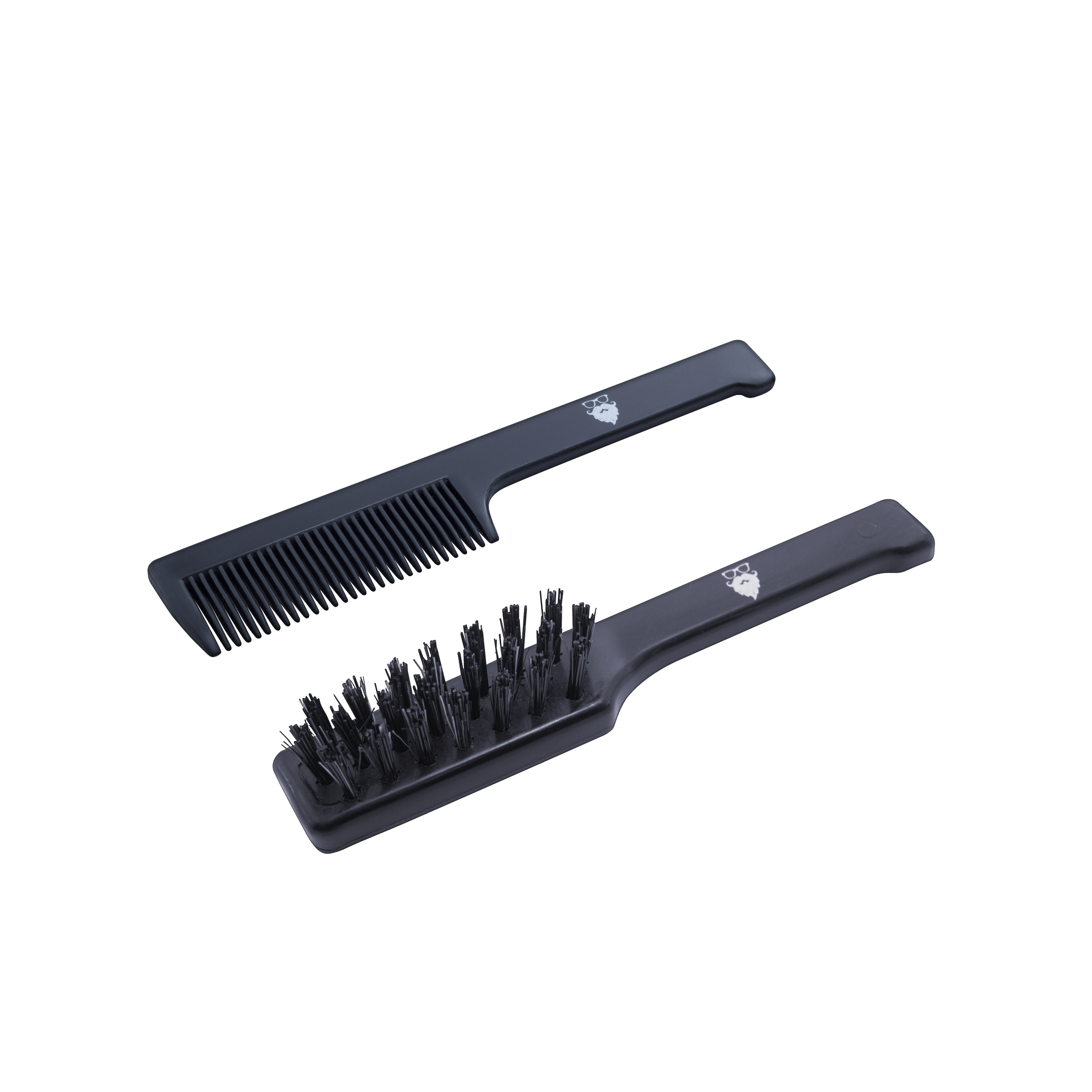Spazzola districante e pettine modellante per dare la giusta piega a barba e baffi.