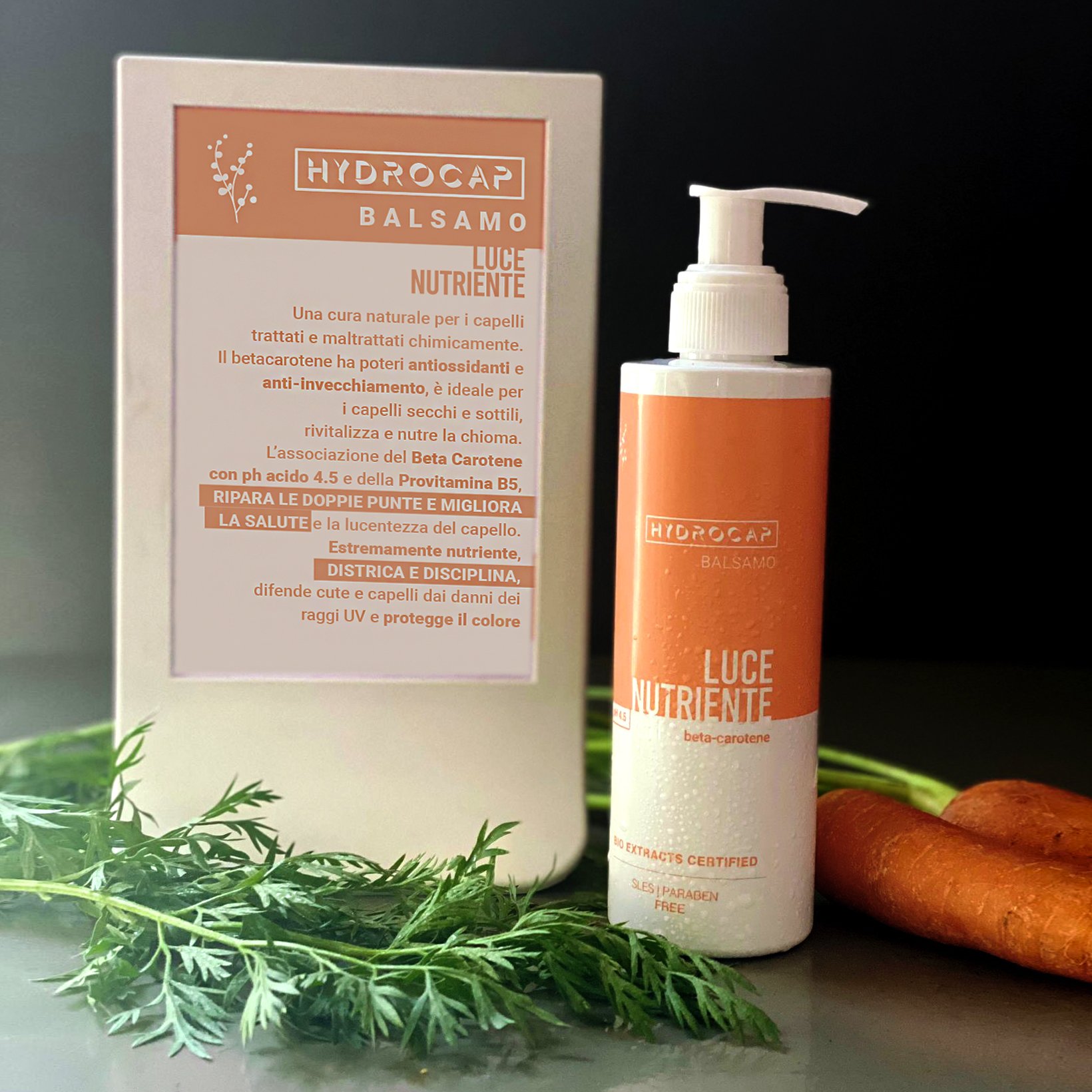 L’associazione del Beta Carotene con ph acido 4.5 e della Pro-vitamina B5, RIPARA LE DOPPIE PUNTE E MIGLIORA LA SALUTE e la lucentezza del capello.