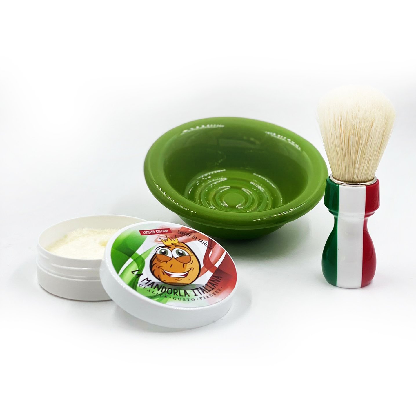 - LA MANDORLA ITALIANA 100 ml – Un Sapone da Rasatura in LIMITED EDITION, rigorosamente Made in Italy e arricchito di forti proprietà nutrienti ed idratanti della mandorla.Il sapone alla mandorla è ideale per detergere e idratare la pelle durante la rasatura. Ha proprietà lenitive e calmanti, anti-ossidanti e antirughe. La mandorla è ricca di vitamina E, A e D. Protegge, nutre la pelle e dona un aspetto morbido e sano al viso.