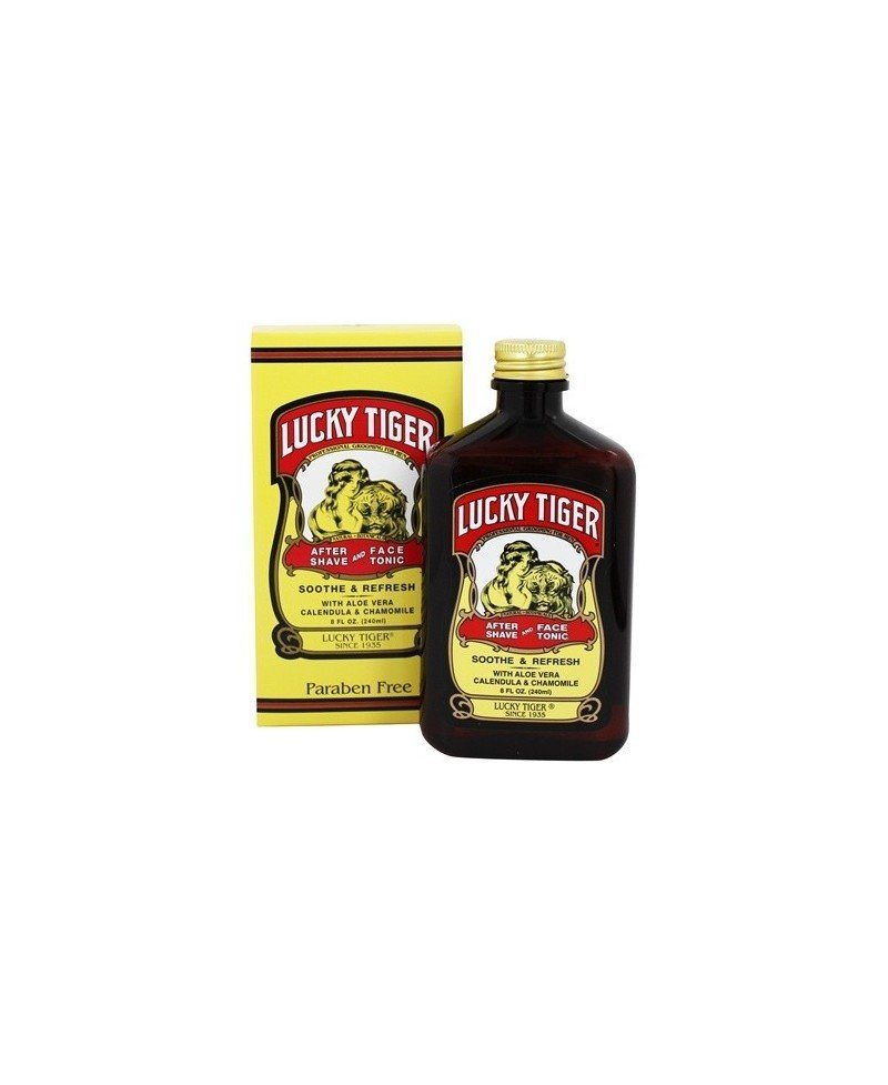 After Shave & Face Tonic Lucky Tiger. Perfetto come lozione per dopobarba e sapone per il viso che tonifica e rinvigorisce la pelle, donando morbidezza e un gradevole profumo aggrumato.