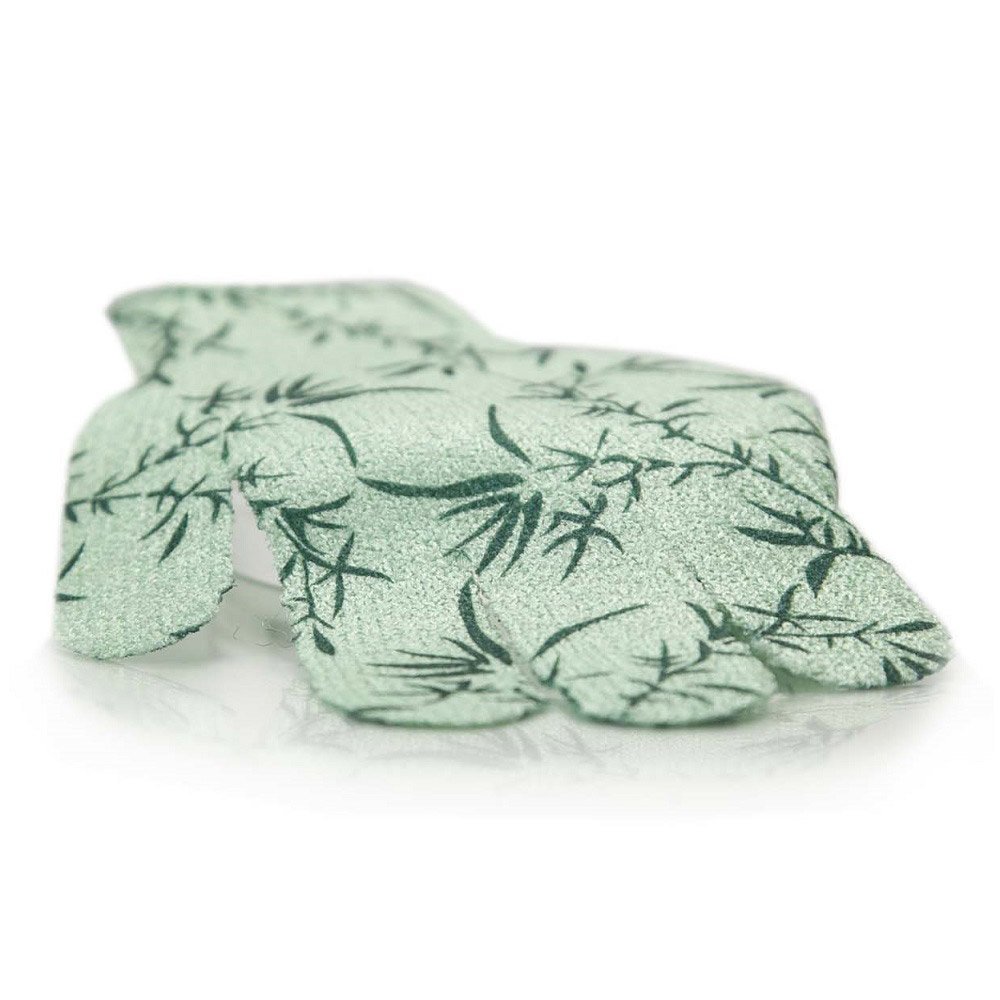 Guanto gommage 5 dita Bambù deterge gentilmente la pelle, esfoliandola leggermente con un’azione facile e precisa. Rende la pelle liscia, tonica e pulita in profondità.