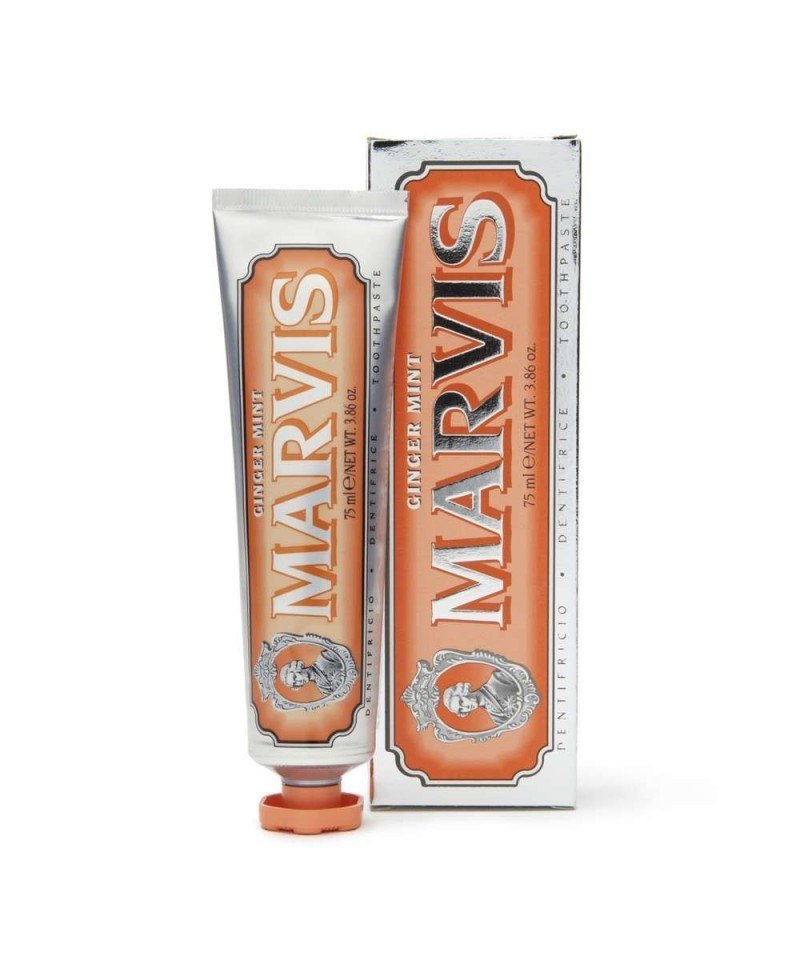 Marvis Ginger Mint Dentifricio al sapore di menta e zenzero è una svolta inconfondibilmente unica sul tuo dentifricio di tutti i giorni. Realizzato con un metodo di lavorazione tradizionale per garantire una pasta densa ed efficace con una straordinaria azione detergente e sbiancante.