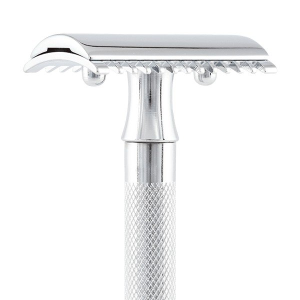 Dettagli del prodotto: Rasoio di sicurezza in tre pezzi. Pettine aperto, diritto.