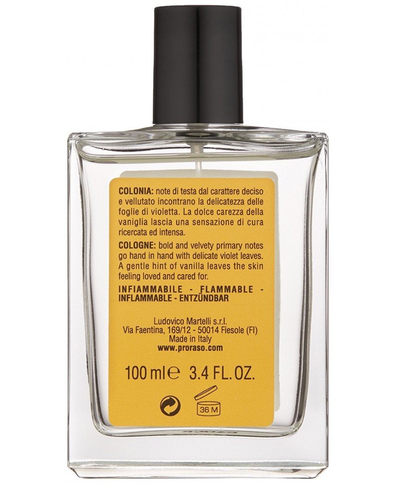 Colonia dal 1948, Proraso lavora con orgoglio e passione a fianco dei professionisti della rasatura. Note di testa dal carattere deciso e vellutato incontrano la delicatezza delle foglie di violetta, con accenti speziati di cumino e zafferano. Il cuore di legni di cedro e guaiaco si combina con la morbidezza di note ambrate. la dolce carezza della vaniglia lascia una sensazione di cura, intensa e ricercata. Con erogatore spray.