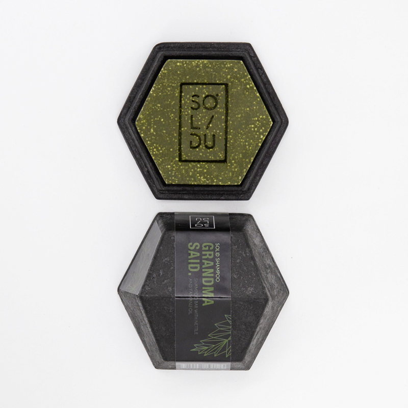 Lo shampoo solido GRANDMA SAID contiene due ingredienti magici per i capelli: polvere di ortica biologica e olio di tamanu. Con la sua capacità di idratare e condizionare i capelli è l’ideale per i capelli fini che hanno bisogno di volume. Il packaging è completamente Plastic Free, naturale e compostabile in 45 giorni. A base di amido, bambù e carbone. Il bambù è uno dei materiali più rinnovabili del pianeta che può crescere fino a un metro al giorno. Per creare il packaging, il bambù viene mescolato all’amido naturale, dopodichè viene tinto con carbone di legna, senza l’utilizzo di coloranti sintetici. Contiene 70 g di prodotto.