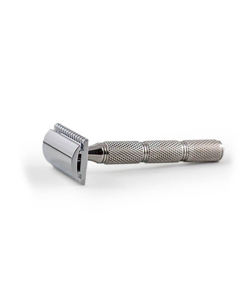 RazoRock ha creato il Mentor per i « wetshavers » più esperti che, in virtù di una « mano » allenata, sono in grado di gestire una testina più aggressiva. “E’ un design per i più esigenti . Sarà apprezzato da chi cerca una rasatura più profonda, risolutiva già al primo passaggio”. La particolare testa in alluminio zincato e cromato è abbinata al solido manico in acciaio inox 303 lavorato con macchine ad alta precisione, in grado di creare una vera zigrinatura e dunque una grande aderenza anche con mani bagnate o insaponate.