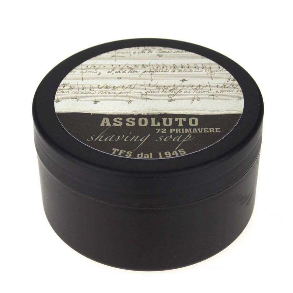 Nel 2017 TFS ha compiuto 72 anni. 72 primavere è il sapone da barba celebrativo con cui la storica azienda torinese fondata dal coraggioso Tcheon Fung Sing festeggia la sua storia di alta qualità come produttore artigianale di saponi da barba, dopobarba e profumi. Un Assoluto appunto, con una sinfonia di note olfattive sapientemente mixate. L’ispirazione vivaldiana delle Primavere deriva dalla collezione di manoscritti conservata presso la Biblioteca Nazionale di Piazza Carlo Alberto a Torino che fa del musicista veneziano un torinese d’azione.