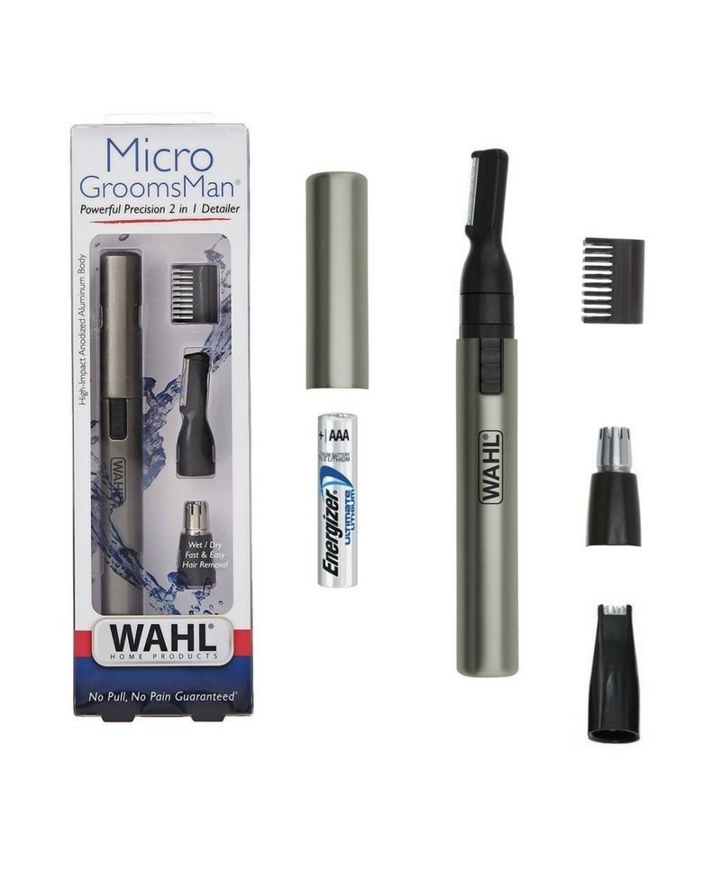 Il Wahl 5640-616 Micro Groomsman è un sistema di taglio a rotazione a molla in acciaio inox per il naso e le orecchie con attacco per sopracciglia supplementare in un elegante design in alluminio spazzolato. Con questo prodotto di qualità di Wahl taglierete i peli del naso e delle orecchie, inguine, basette, baffi e peli del collo. Le lame in acciaio inox di precisione rimovibili sono adatte per rasature a umido e a secco. Dispositivo veloce, sicuro, semplice e igienico.